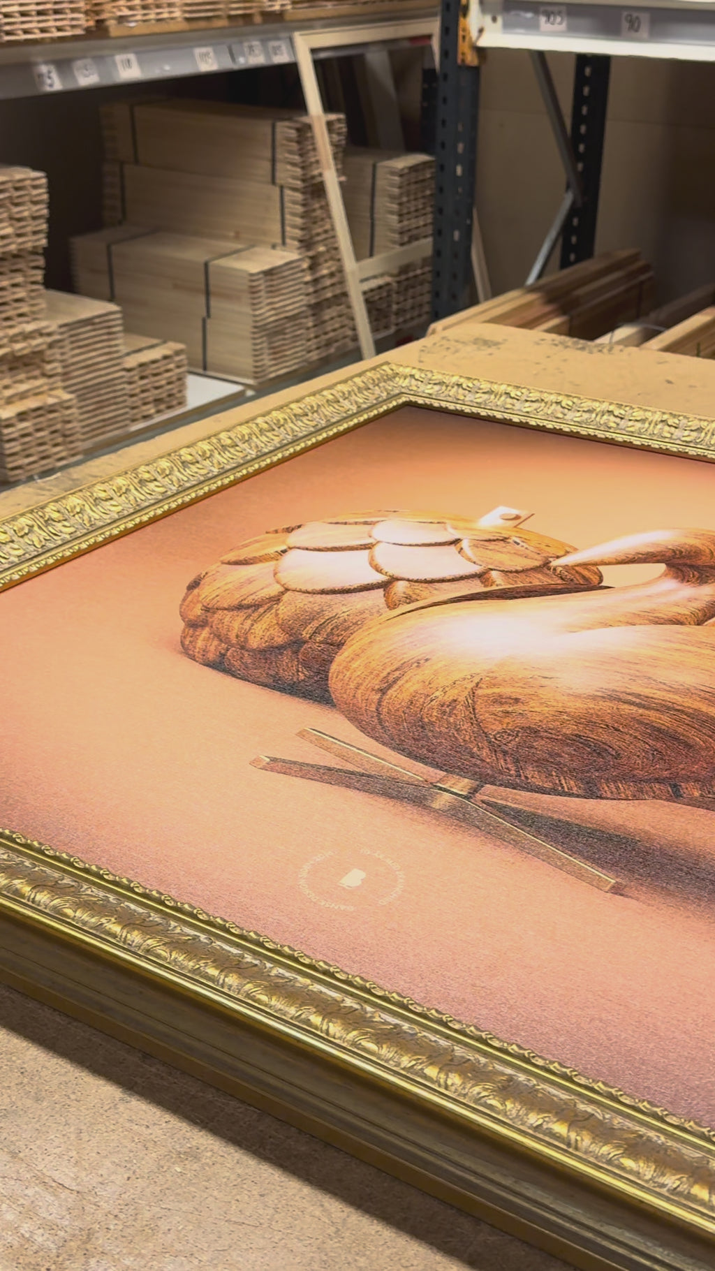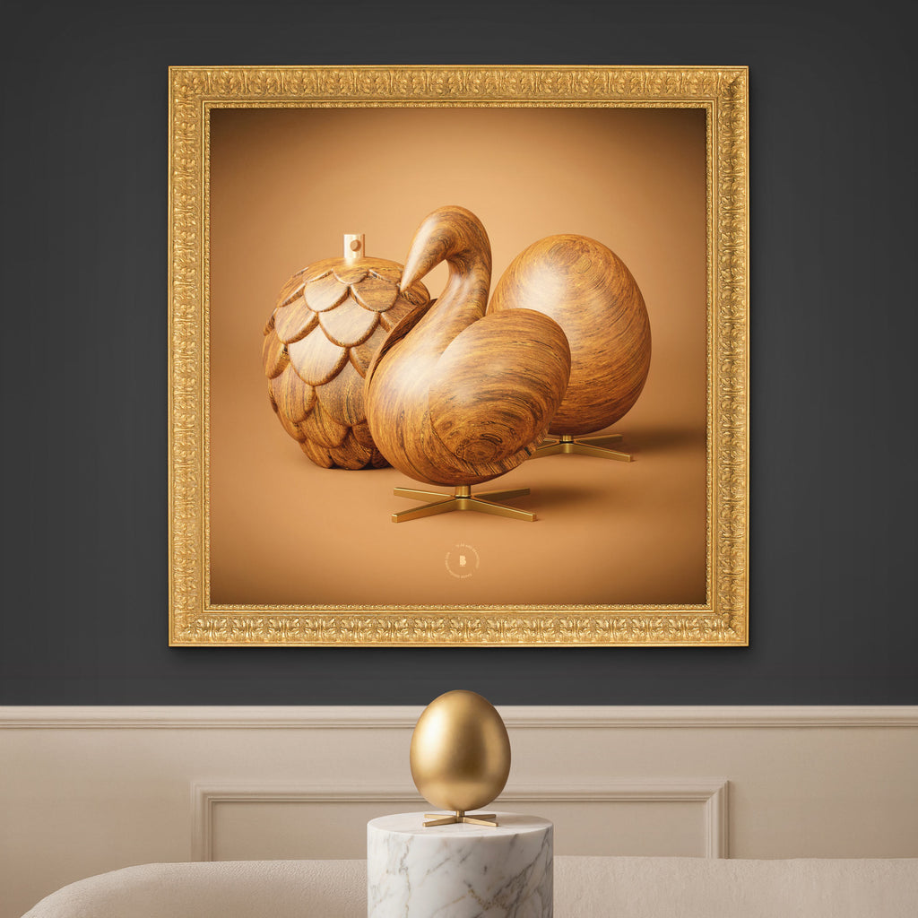 Lærredsprintet er produceret på bomuldslærred i højeste kvalitet og leveres færdigindrammet i en eksklusiv guldfarvet ramme, der tilfører værket et klassisk museumsudtryk. Kombinationen af det gyldne motiv, den ornamenterede ramme og det begrænsede oplag gør værket til et ægte samlerobjekt for de heldige, der sikrer sig et eksemplar.