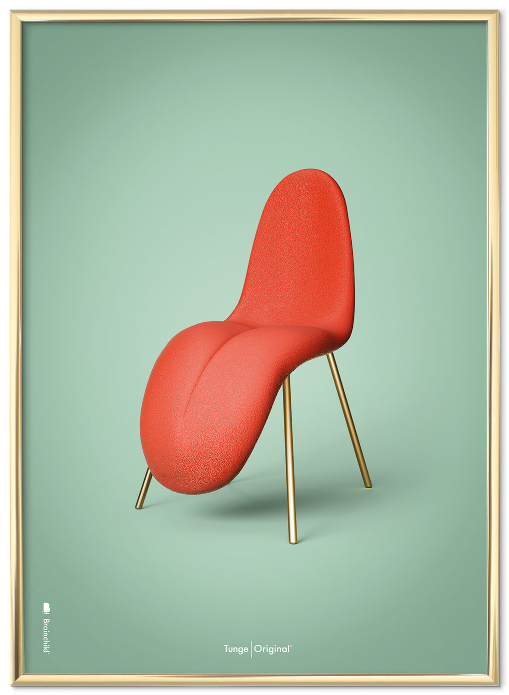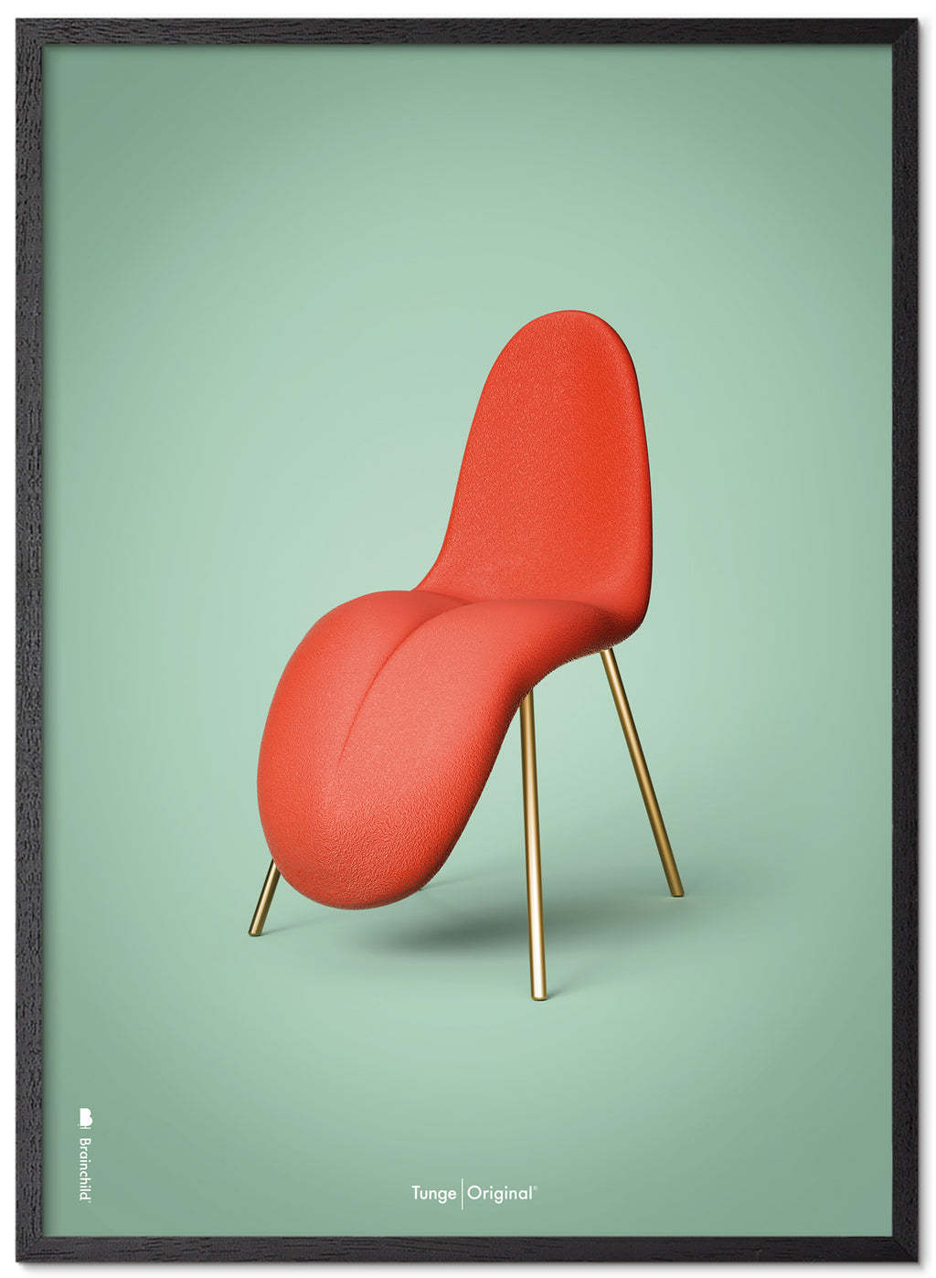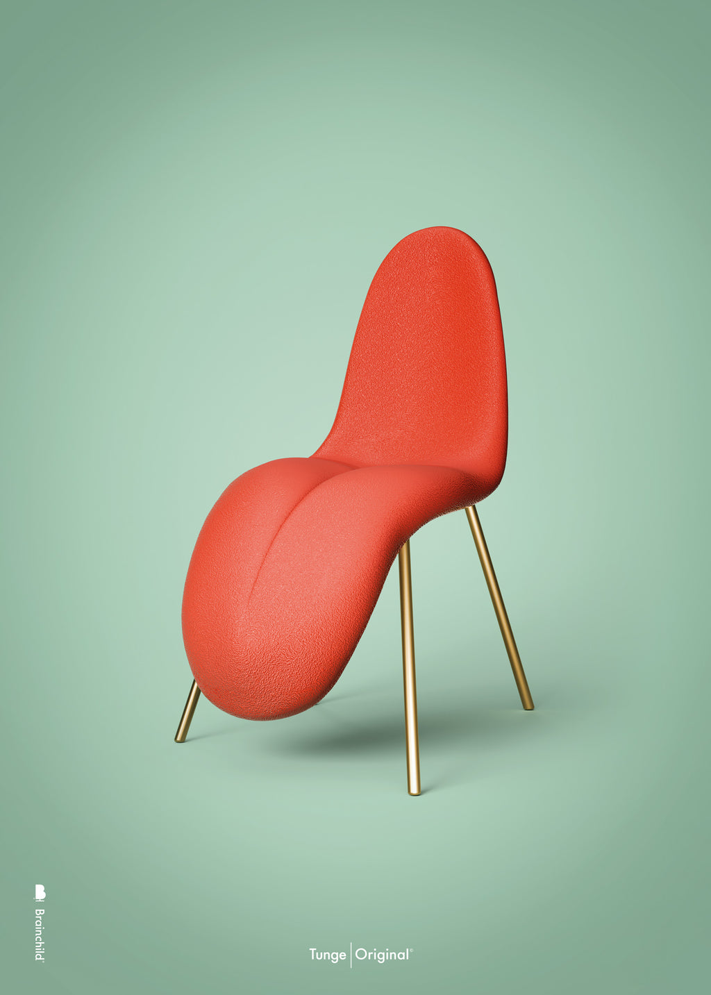 Brainchild plakat med motivet Tunge i klassisk stil på en mintgrøn baggrund. Plakaten er en bogstavelig fortolkning af Arne Jacobsens stol, Tungen, som blev designet i 1955. Tungen strækker sig ud og tilføjer din indretning et dristigt og originalt udtryk. Brainchilds fortolkning af Tungen er dansk design af højeste kvalitet, som fuldender din boligindretning.