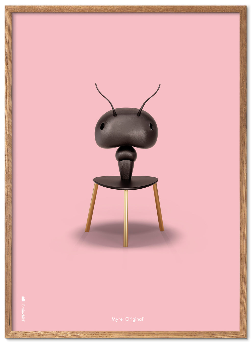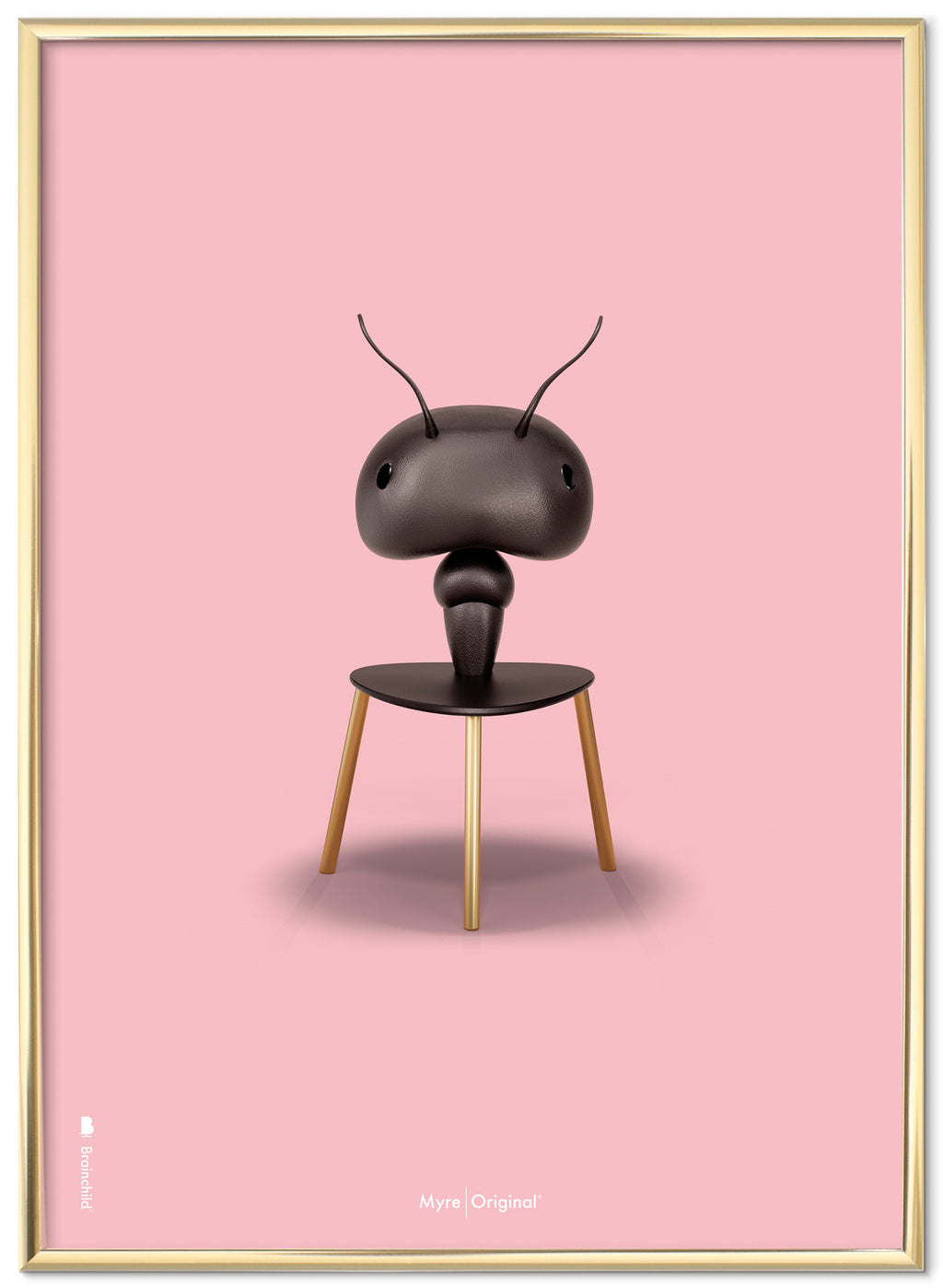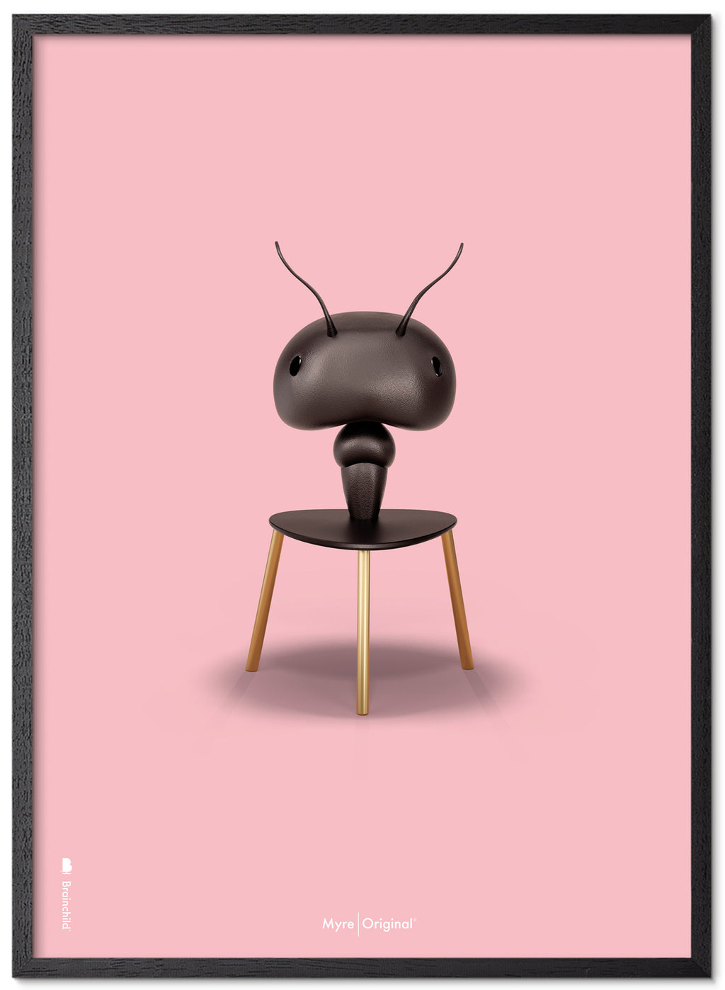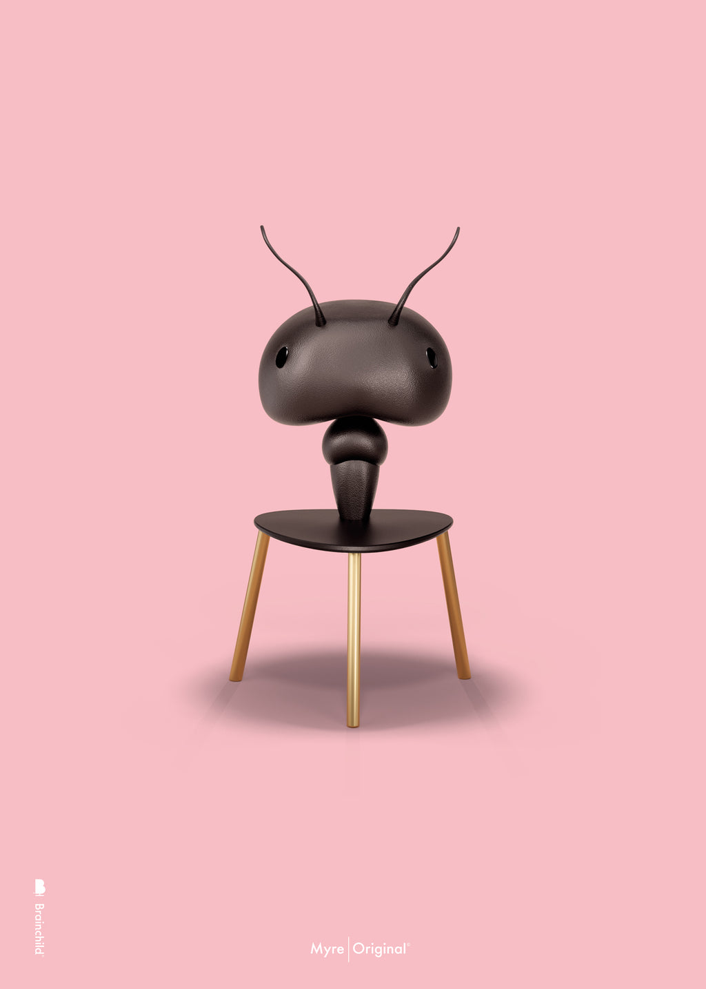 Brainchild plakat med motivet Myre i klassisk stil Myre på en rosa baggrund. Plakaten er en bogstavelig fortolkning af Arne Jacobsens stol, Myren, som blev designet i 1952. Myren er det bevidste og minimalistiske valg i din indretning. Brainchilds fortolkning af Myren er dansk design af højeste kvalitet, som fuldender din boligindretning.
